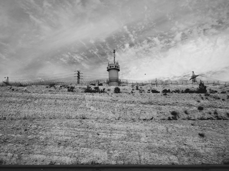 La foto di copertina l’ho scattata nel 2015 sul tratto di strada tra Gerusalemme e Betlemme. Si intravede parte del muro con una torretta di controllo. Attorno a Betlemme, il muro raggiunge la sua altezza massima di otto metri.